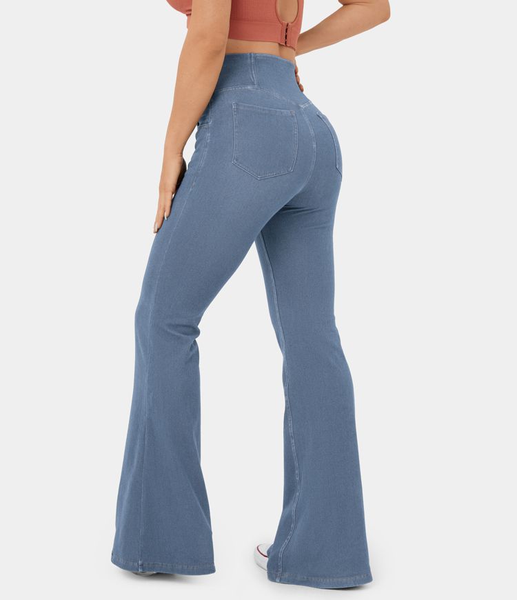Jeans Halara Flex™ Denim pierna ancha elástico lavado bolsillo delantero tiro alto