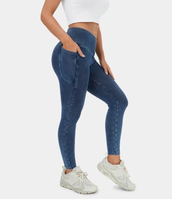 Jeans Halara Flex™ Denim anchos elásticos de tiro alto y holgados con múltiples bolsillos