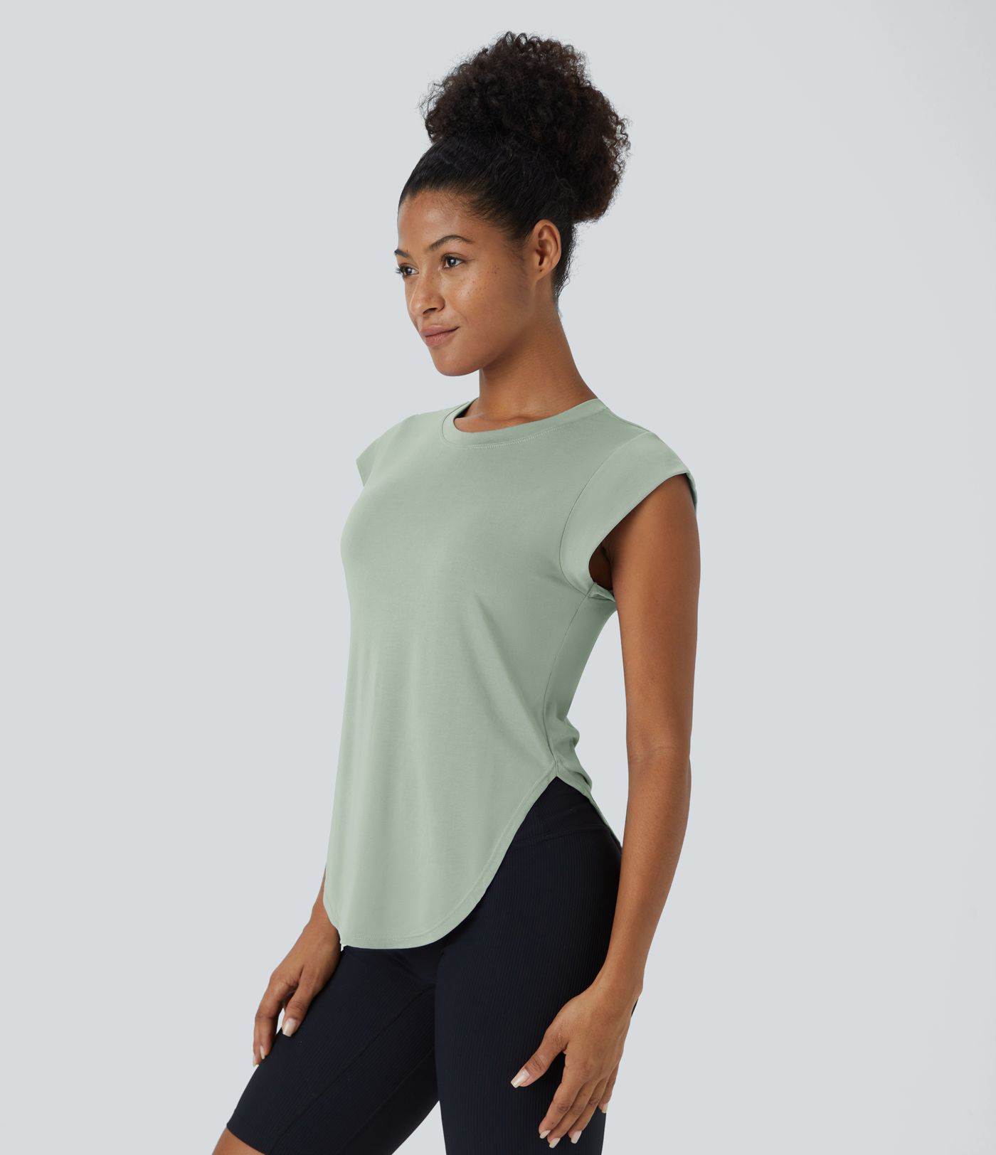 Top deportivo yoga dobladillo redondeado cuello redondo