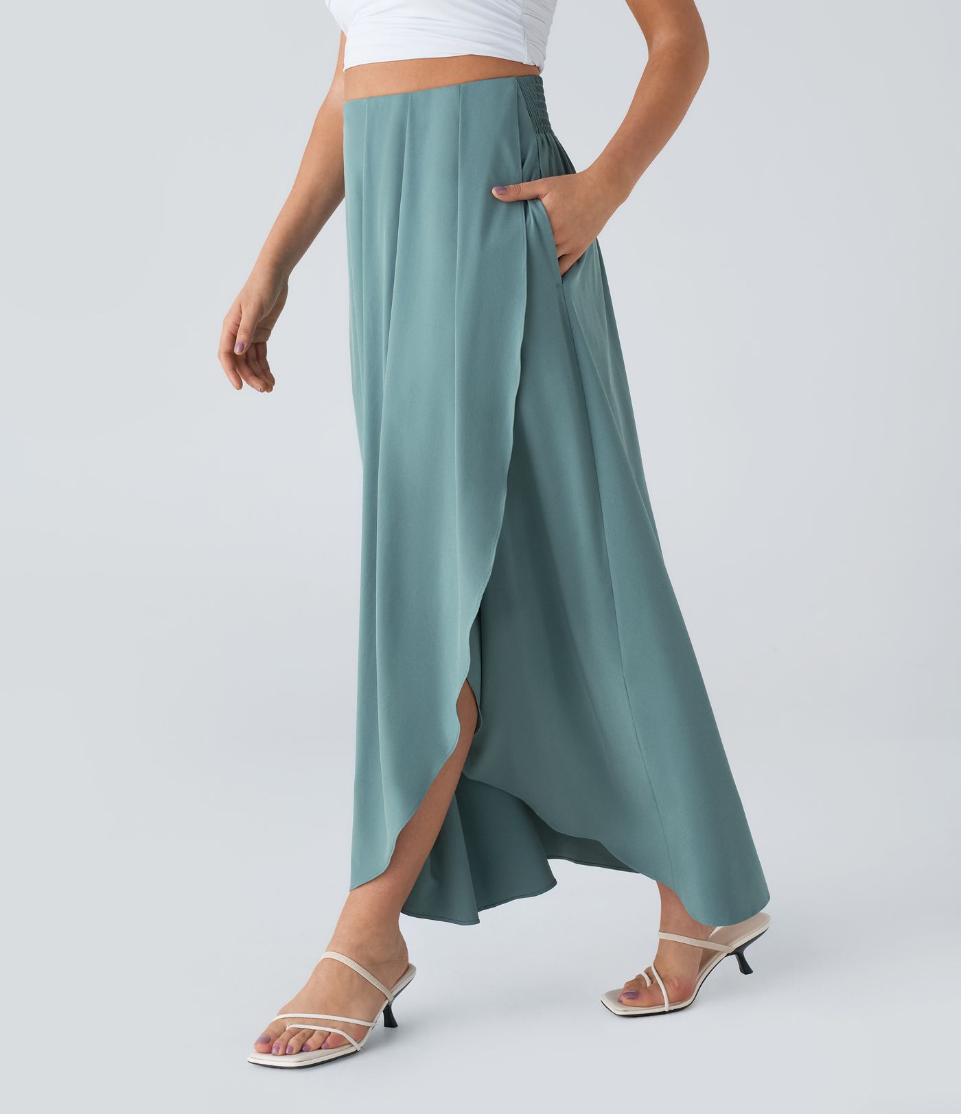 Falda maxi Breezeful™ resort secado rápido fluida dividida bolsillo lateral plisado tiro alto