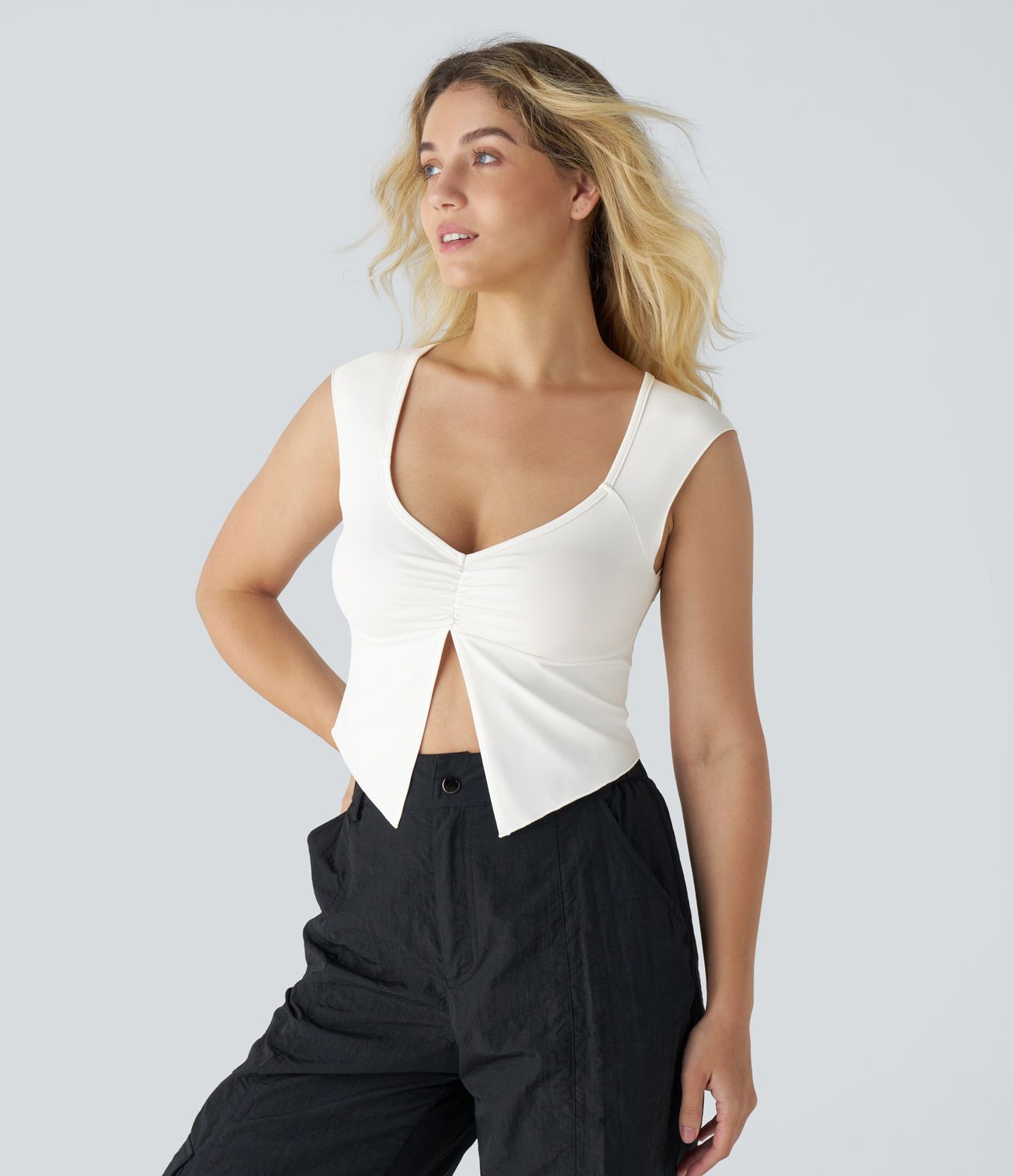 Top recortado abertura fruncida