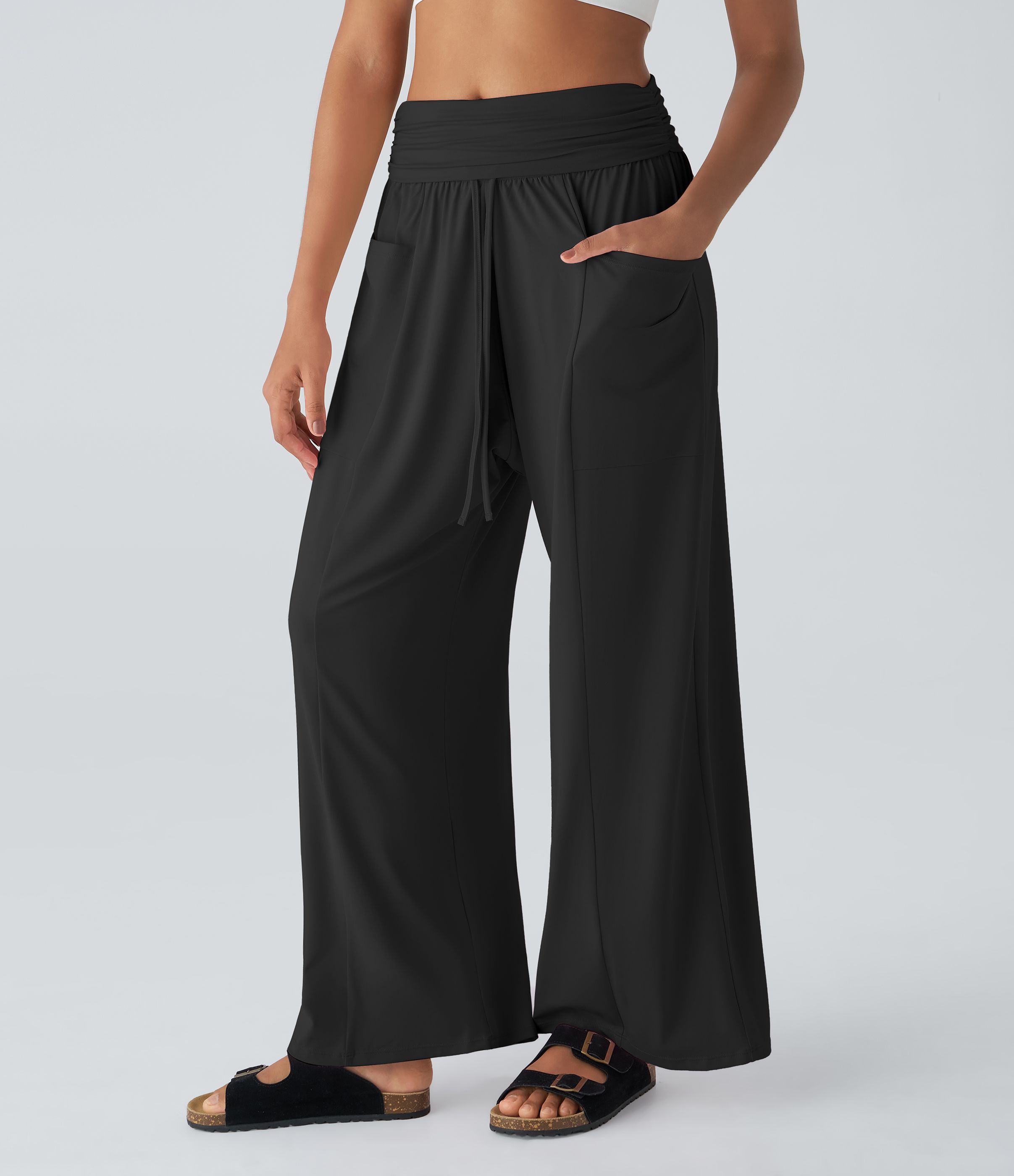 Pantalón cargo harén pierna ancha bolsillo lateral cordón plegable tiro medio