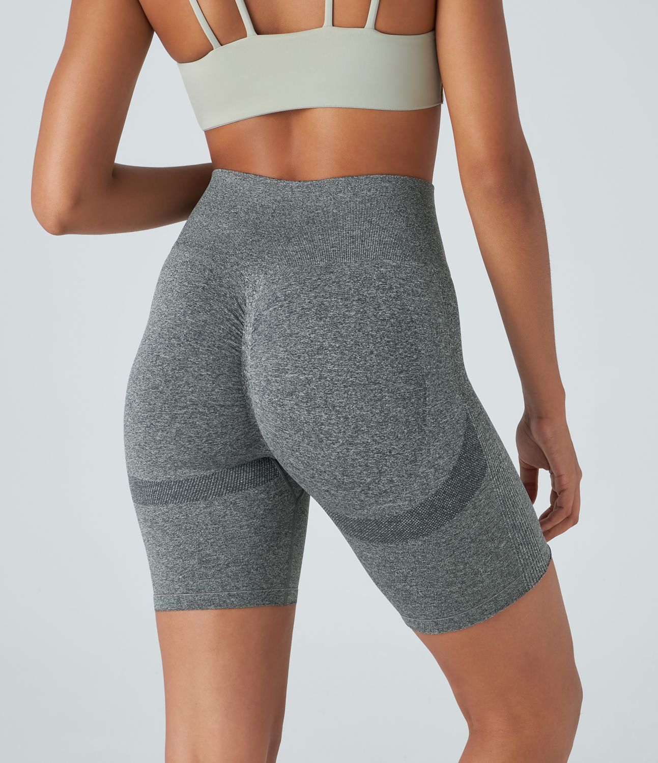Pantalón corto motociclista yoga levantamiento glúteo tiro alto sin costuras 17.5cm