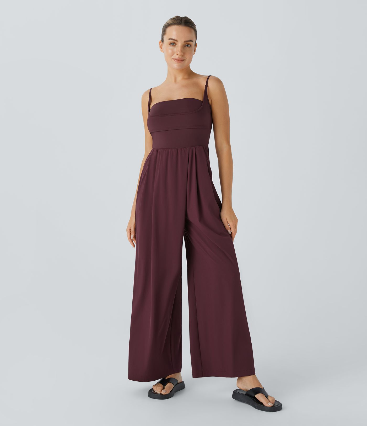 Mono Breezeful™ secado rápido pierna ancha plisada bolsillo lateral sin espalda