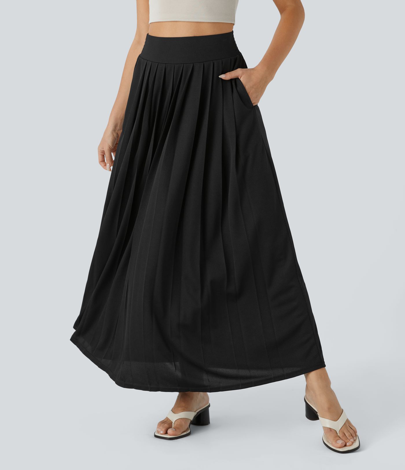Falda gofre maxi fluida plisada bolsillo lateral tiro alto