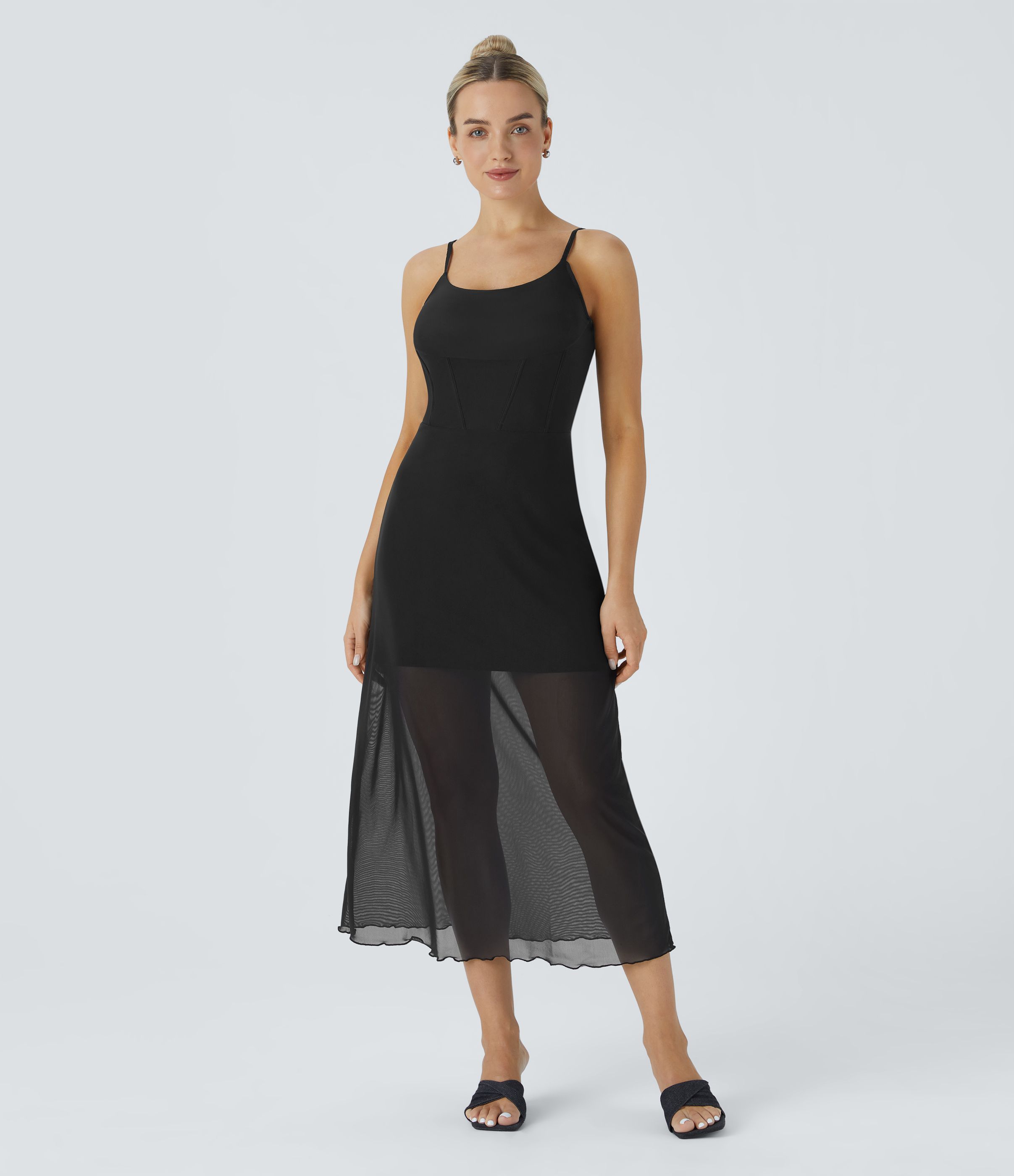 Vestido lencero malla midi estampado espina pescado decorativa correa ajustable