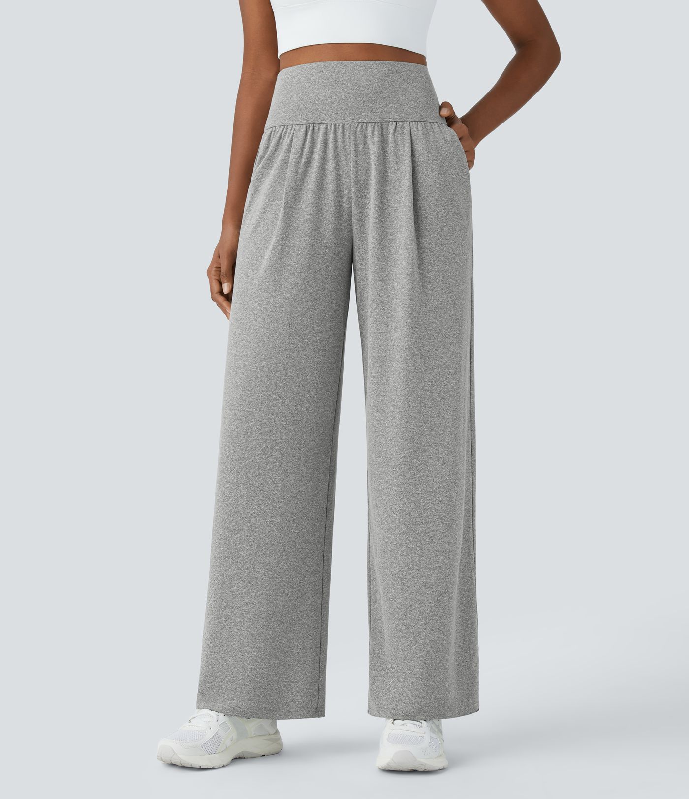 Pantalón yoga tiro alto recto bolsillo lateral pliegue