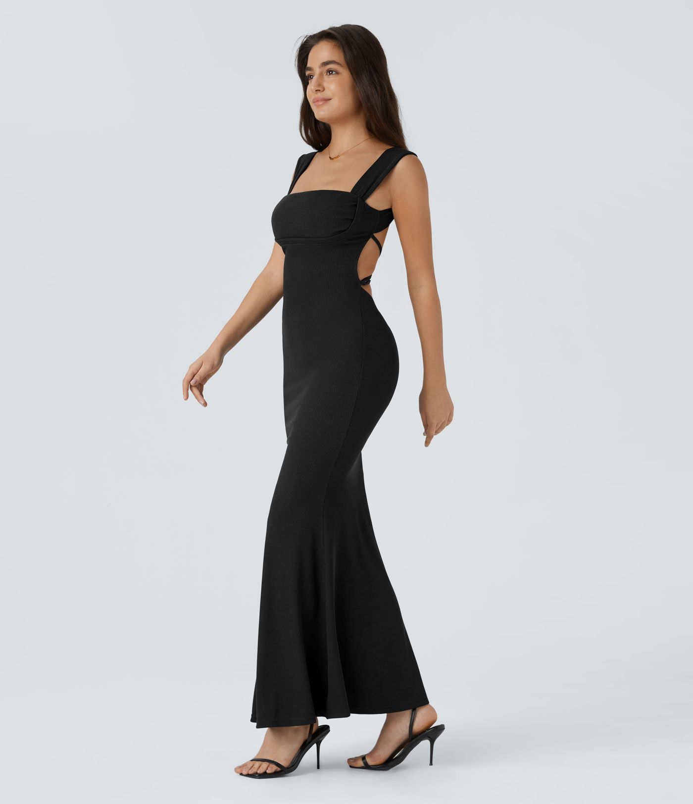 Vestido largo fiesta cuello cuadrado sin espalda entrecruzado cordón