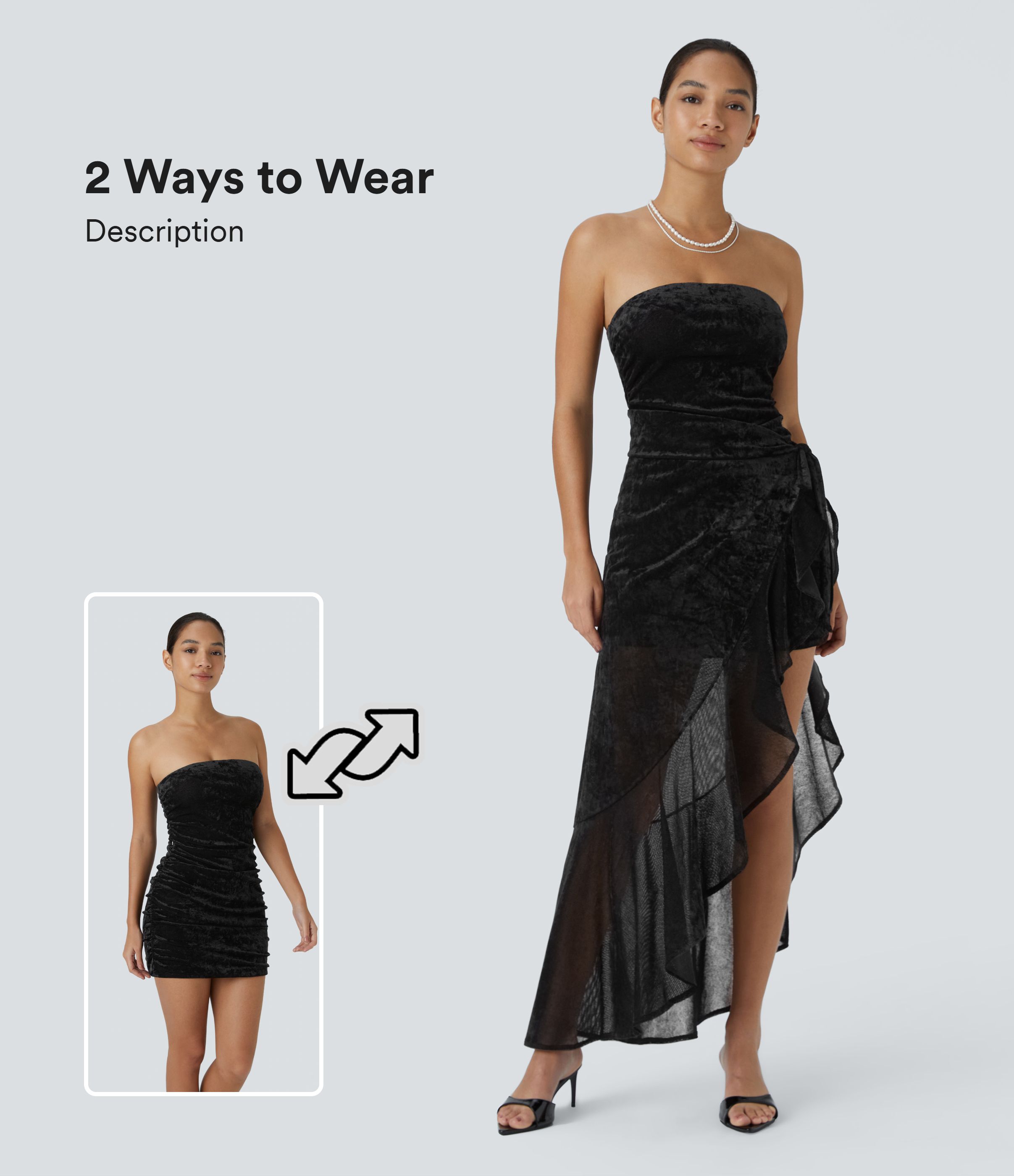 Vestido fiesta largo ajustado terciopelo frunce ribete volante lazo lateral