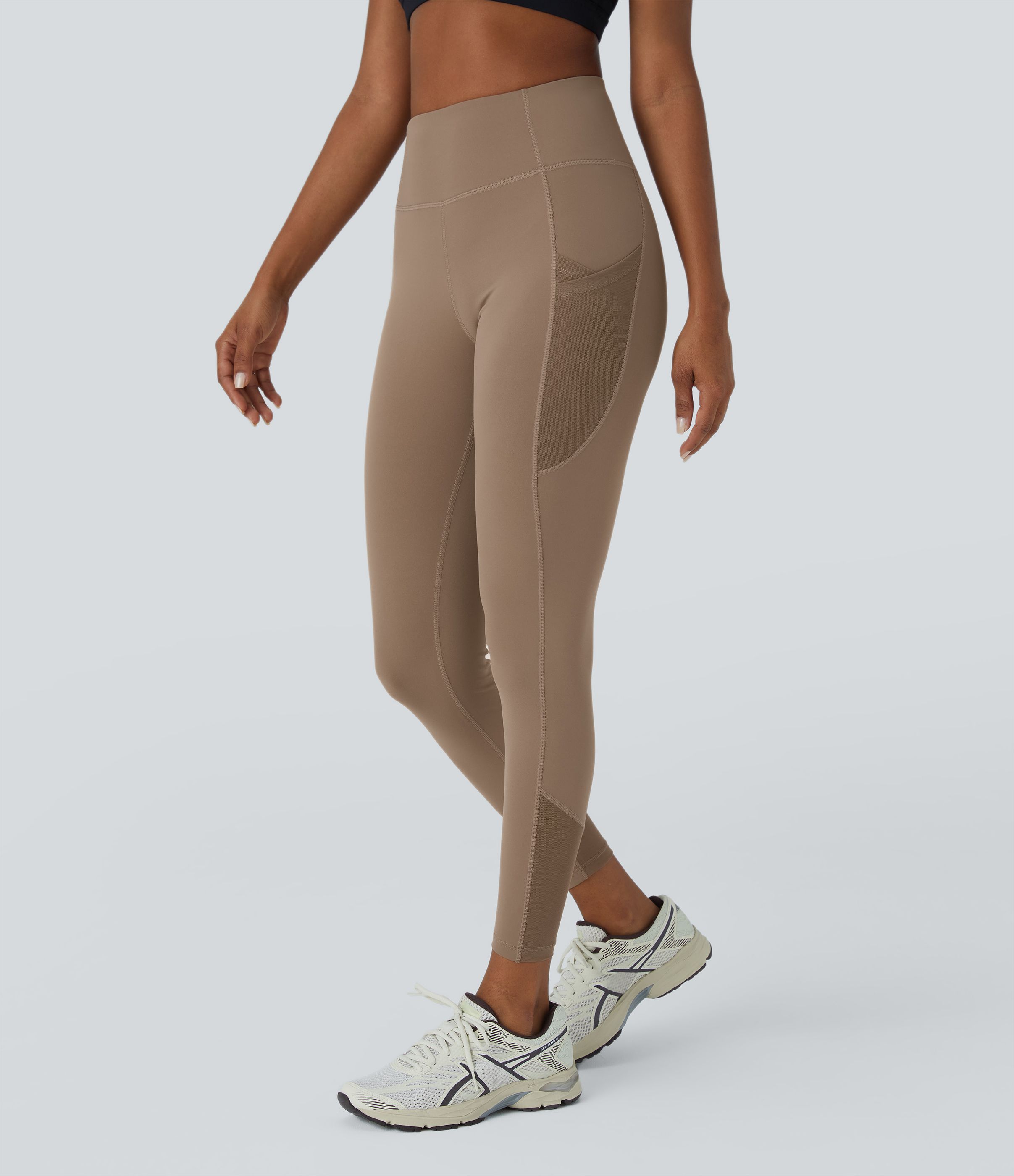 Leggings yoga tiro alto bolsillo cruzado lateral malla contrastante 7/8