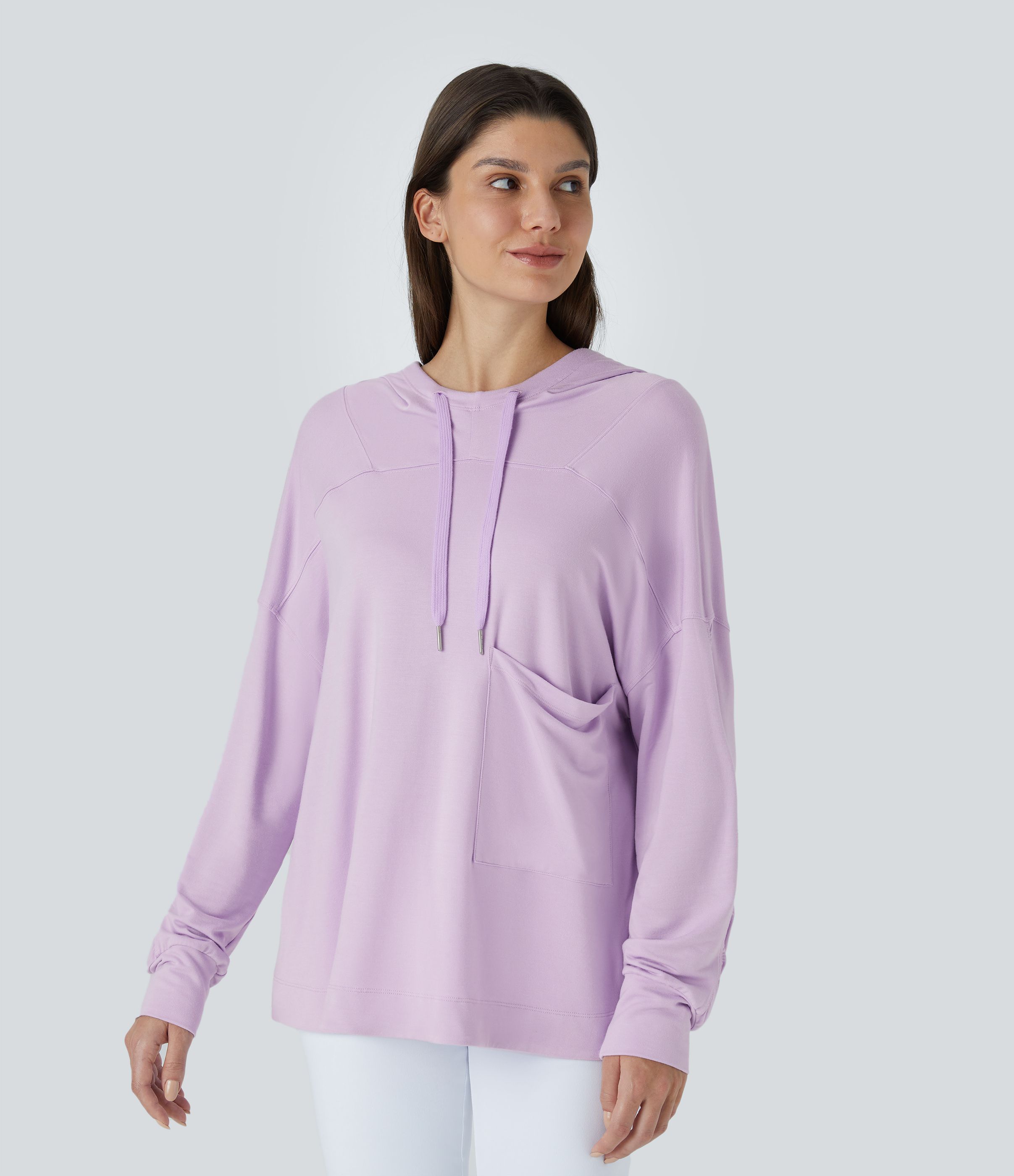 Sudadera gran tamaño capucha cordón ajustable hombro caído bolsillo pecho