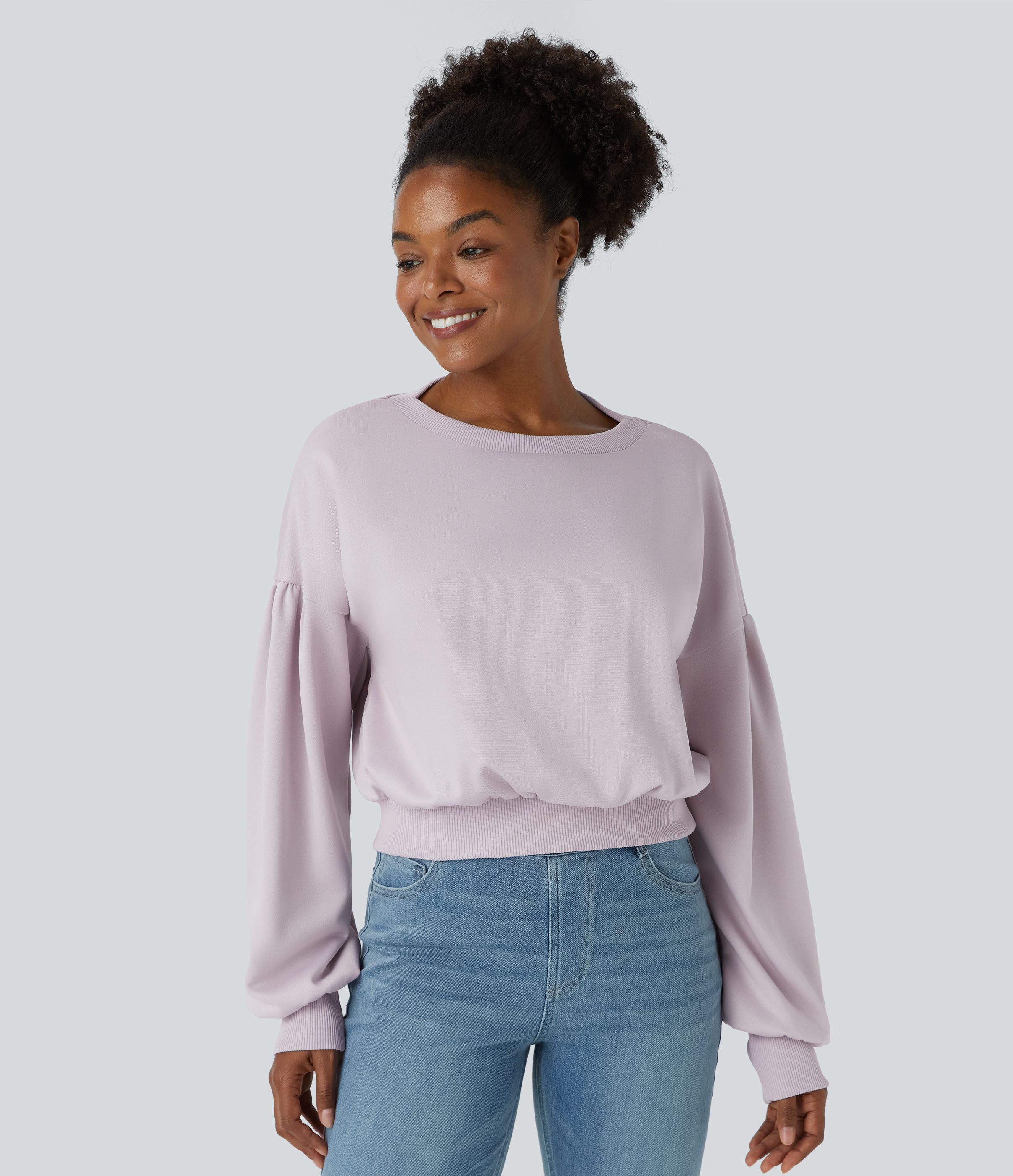 Sudadera holgada cuello redondo hombro caído manga obispo plisada