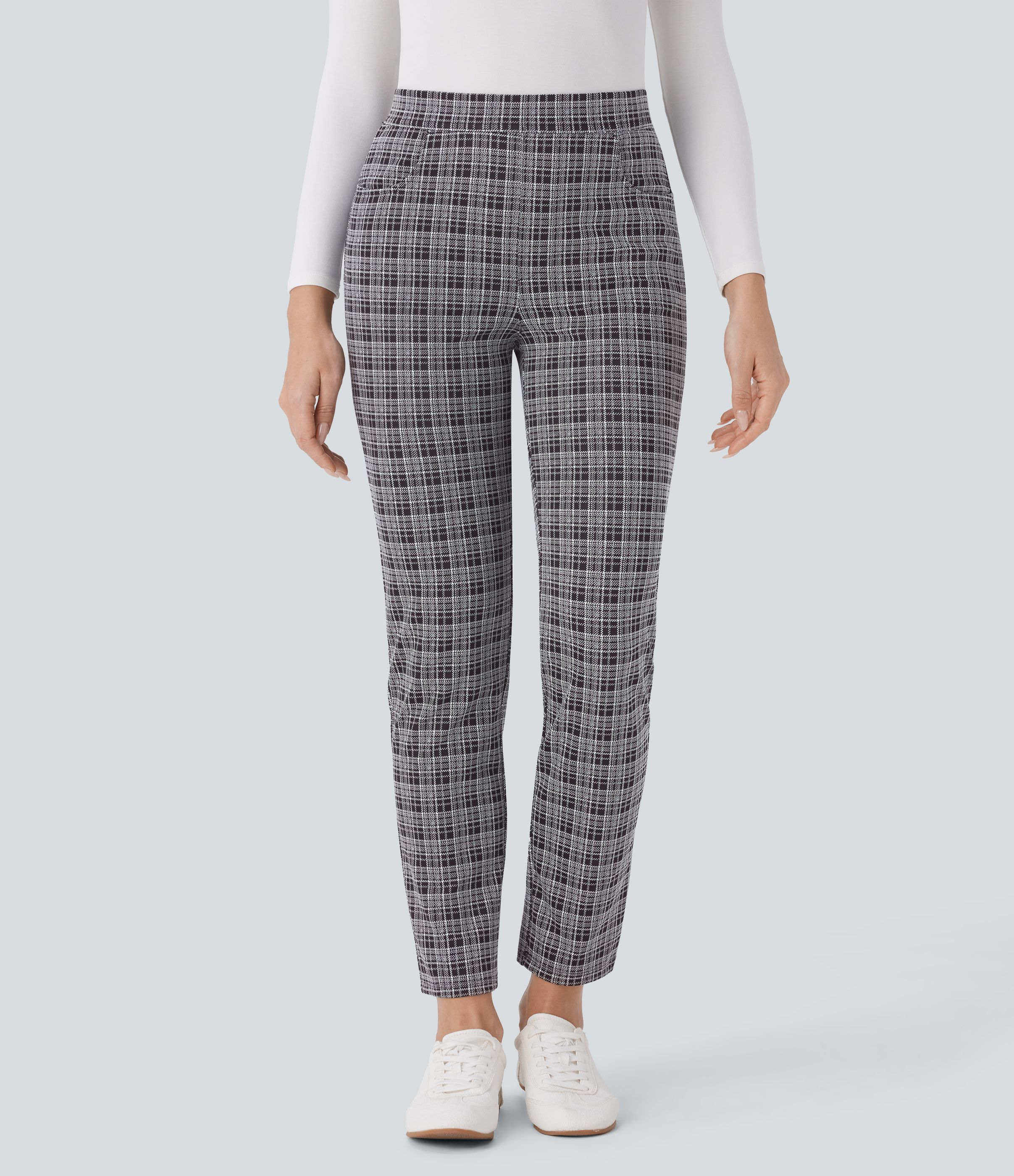 Pantalón oficina ajustado cuadro múltiple bolsillo tiro alto