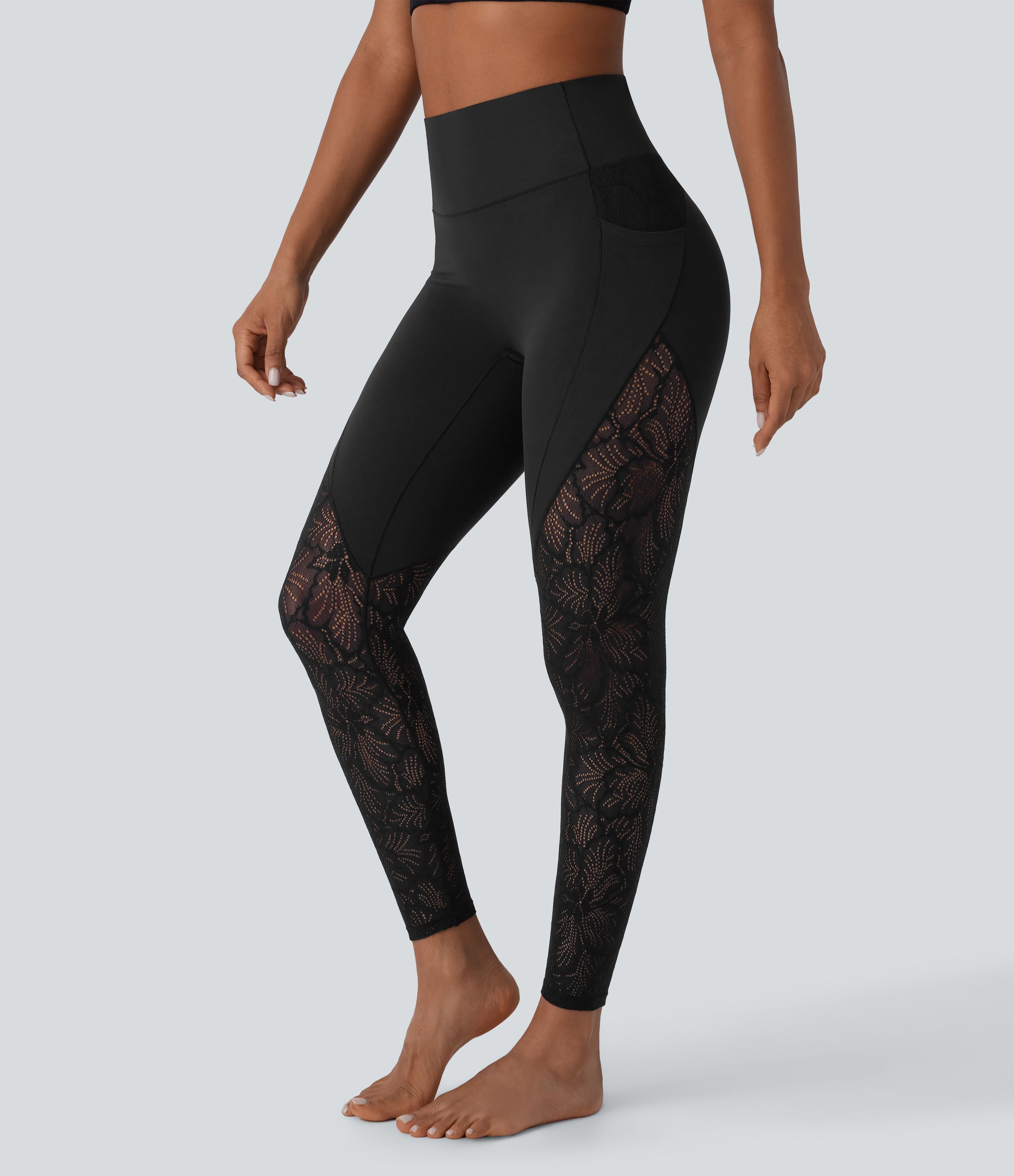Leggings de yoga Softlyzero™ UPF50+ de tiro alto con encaje en contraste y bolsillos laterales en longitud 7/8