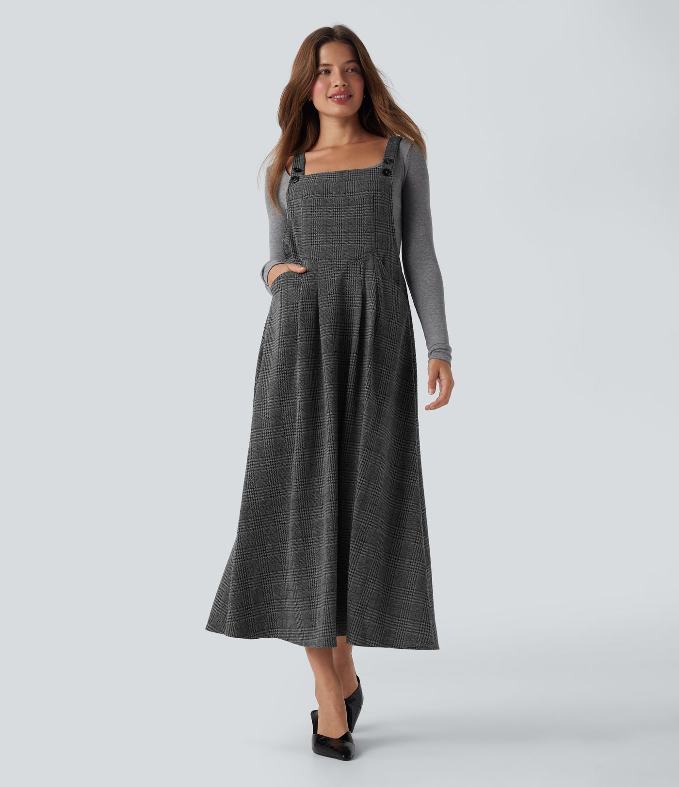 Vestido midi de oficina con bolsillos y estampado de pata de gallo