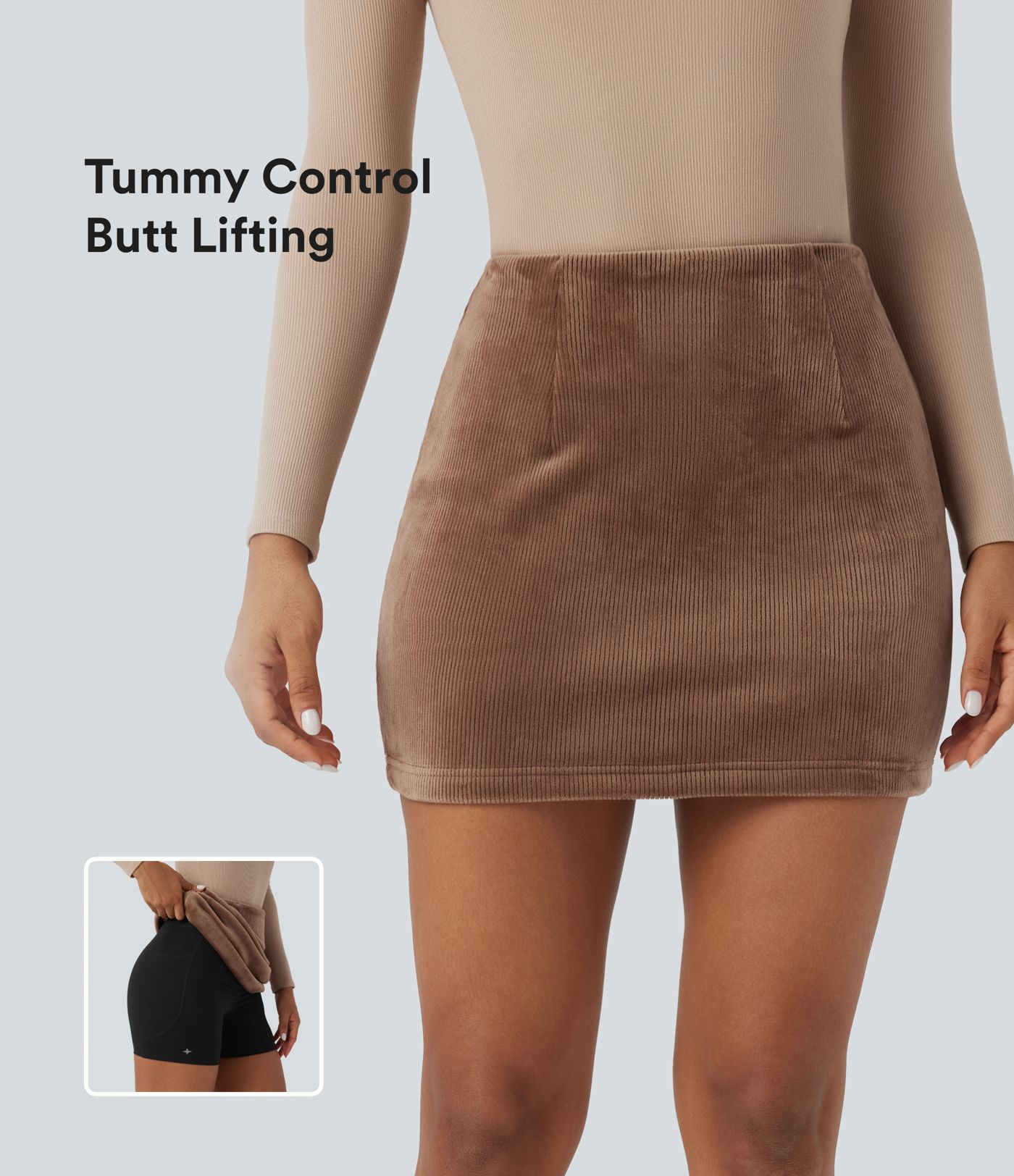 Minifalda casual ajustada de pana con tiro alto con control de abdomen y realce de glúteos push-up con bolsillos