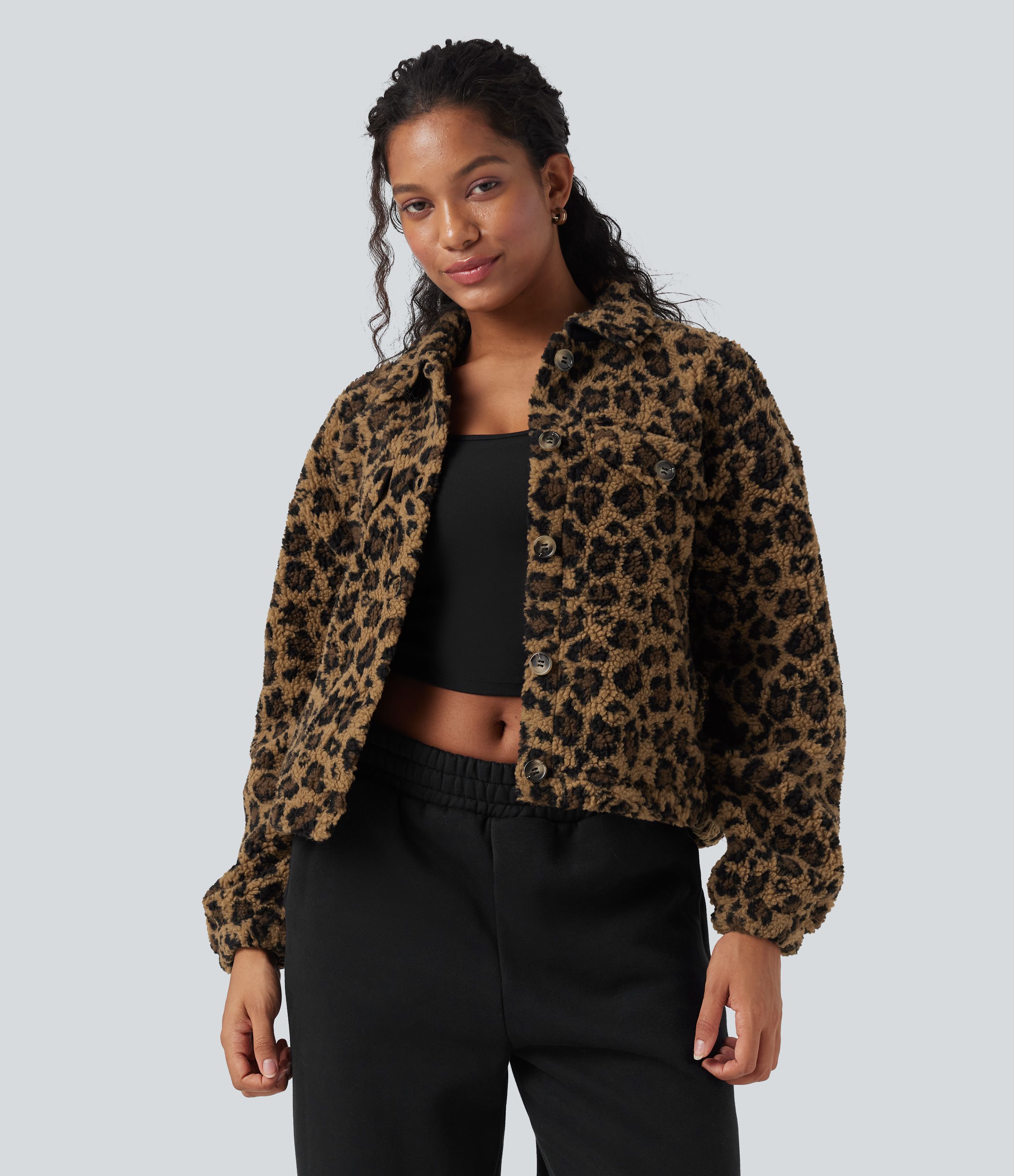 Chamarra casual de sherpa de manga larga con bolsillos