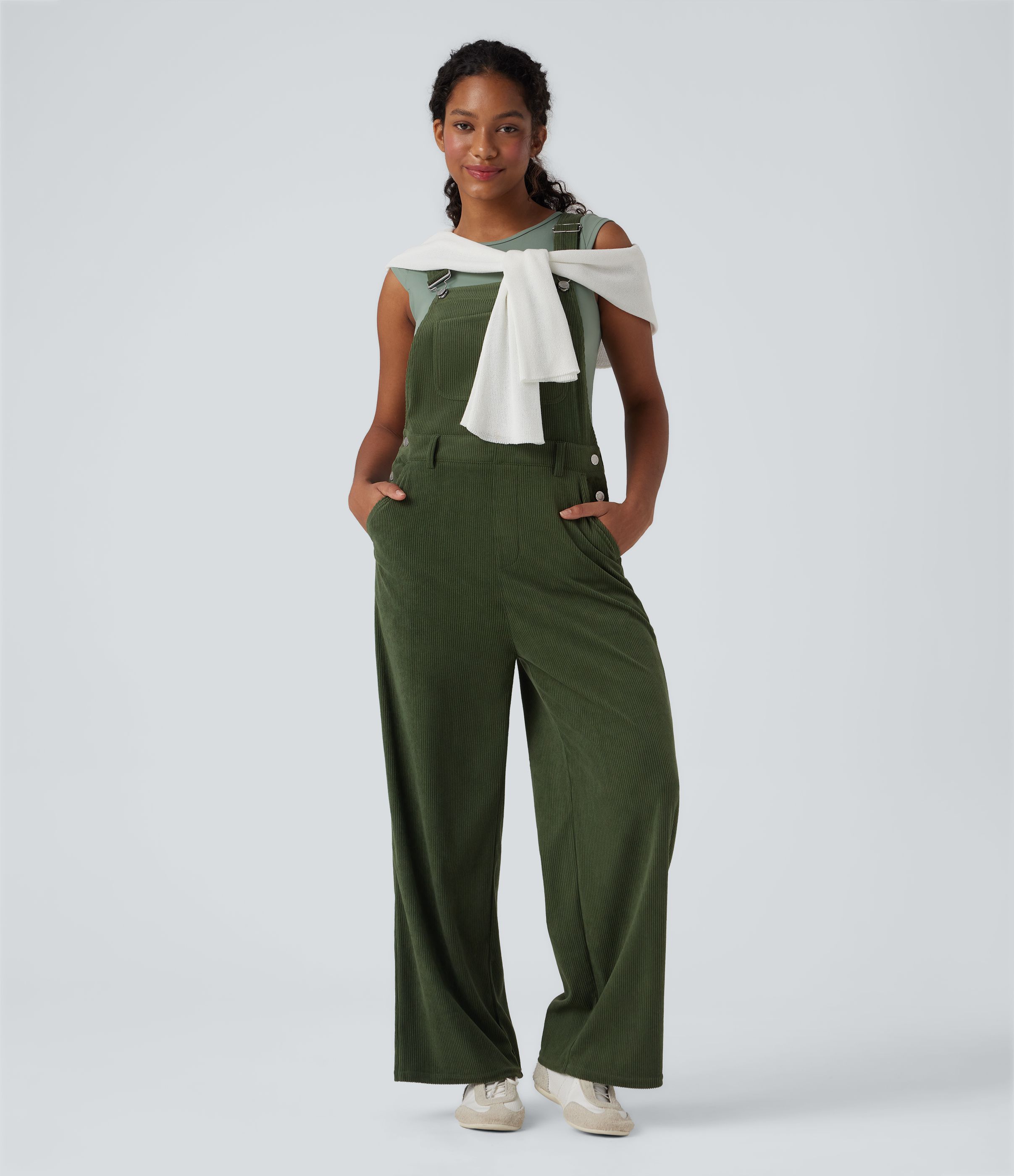 Jumpsuit casual de pana con pierna recta y bolsillos
