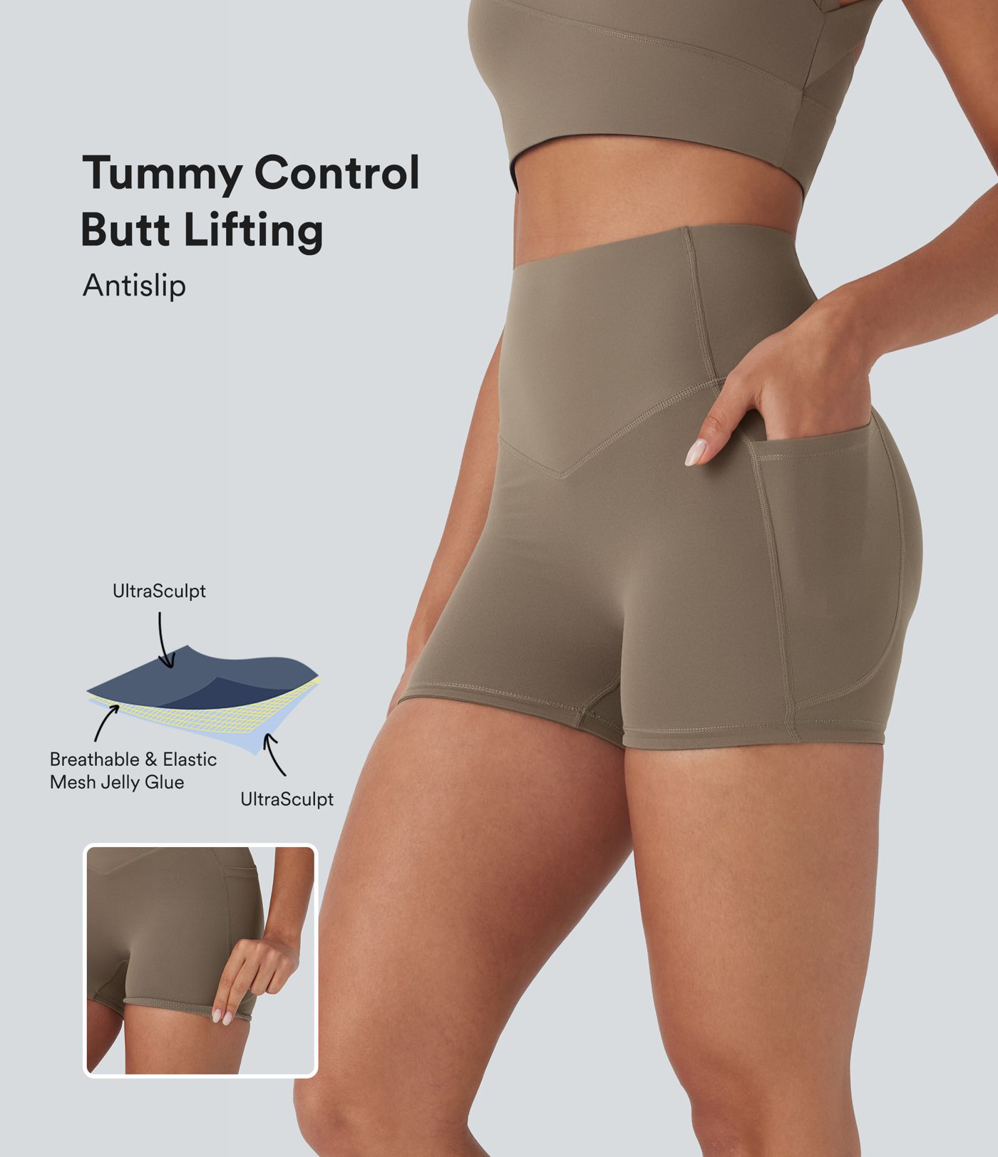 Shorts biker Halara UltraSculpt™ de tiro alto con push-up y reductor de abdomen con bolsillos laterales