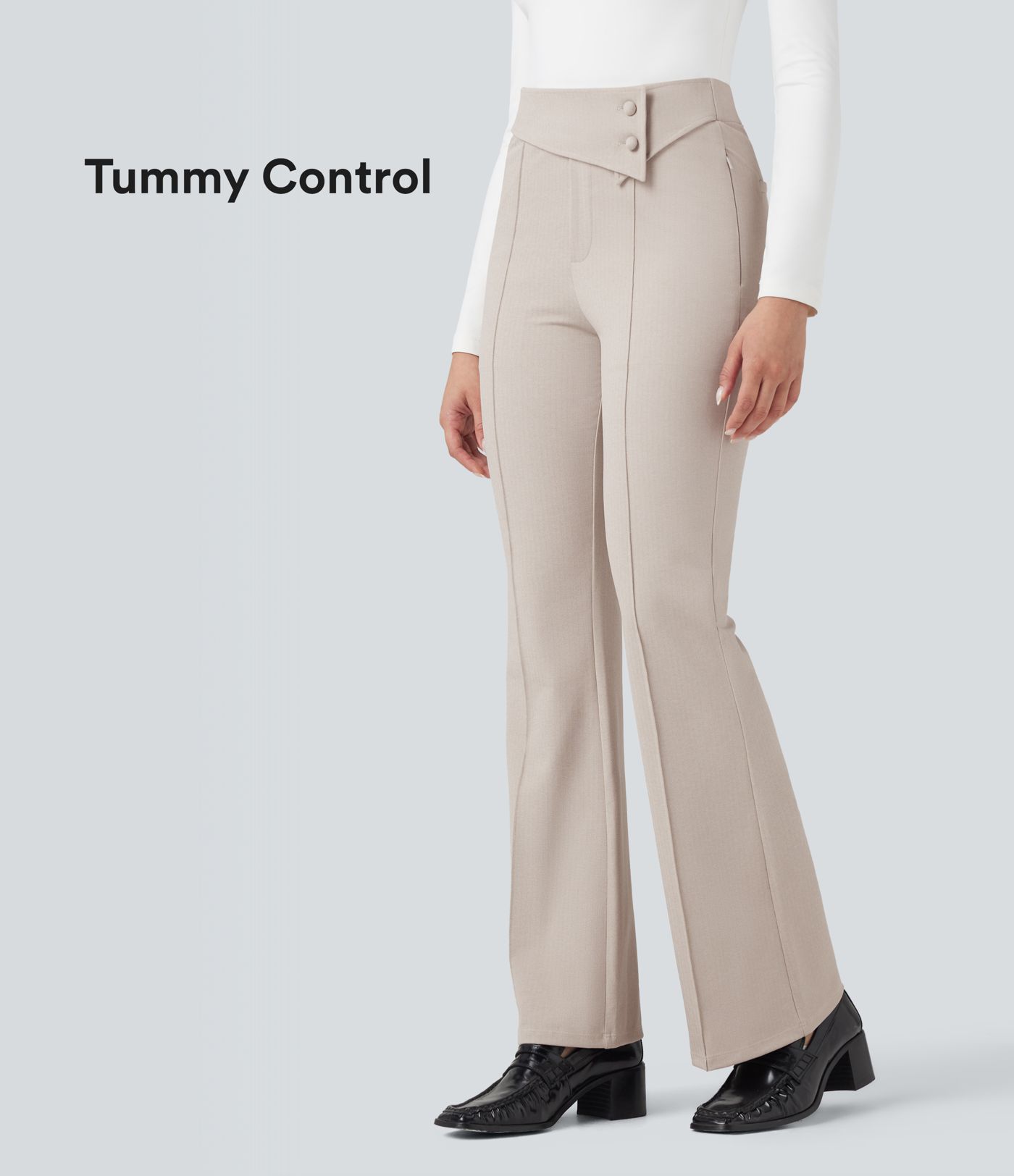 Pantalones de oficina Halara Flex™ de tiro alto plegables con control de abdomen, diseño de espiga y bolsillos