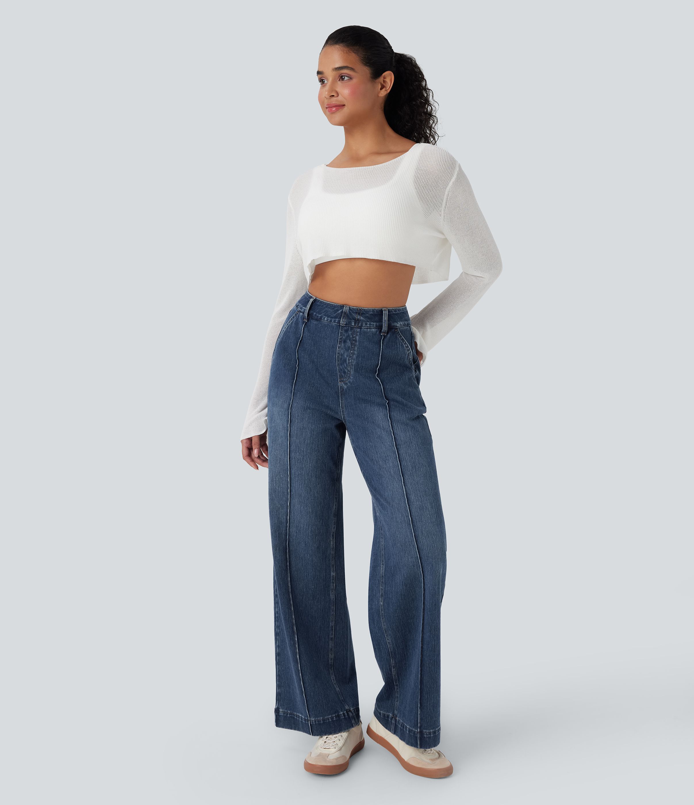 Jeans anchos Halara Flex™ de tiro alto tipo desgastado casuales con bolsillos