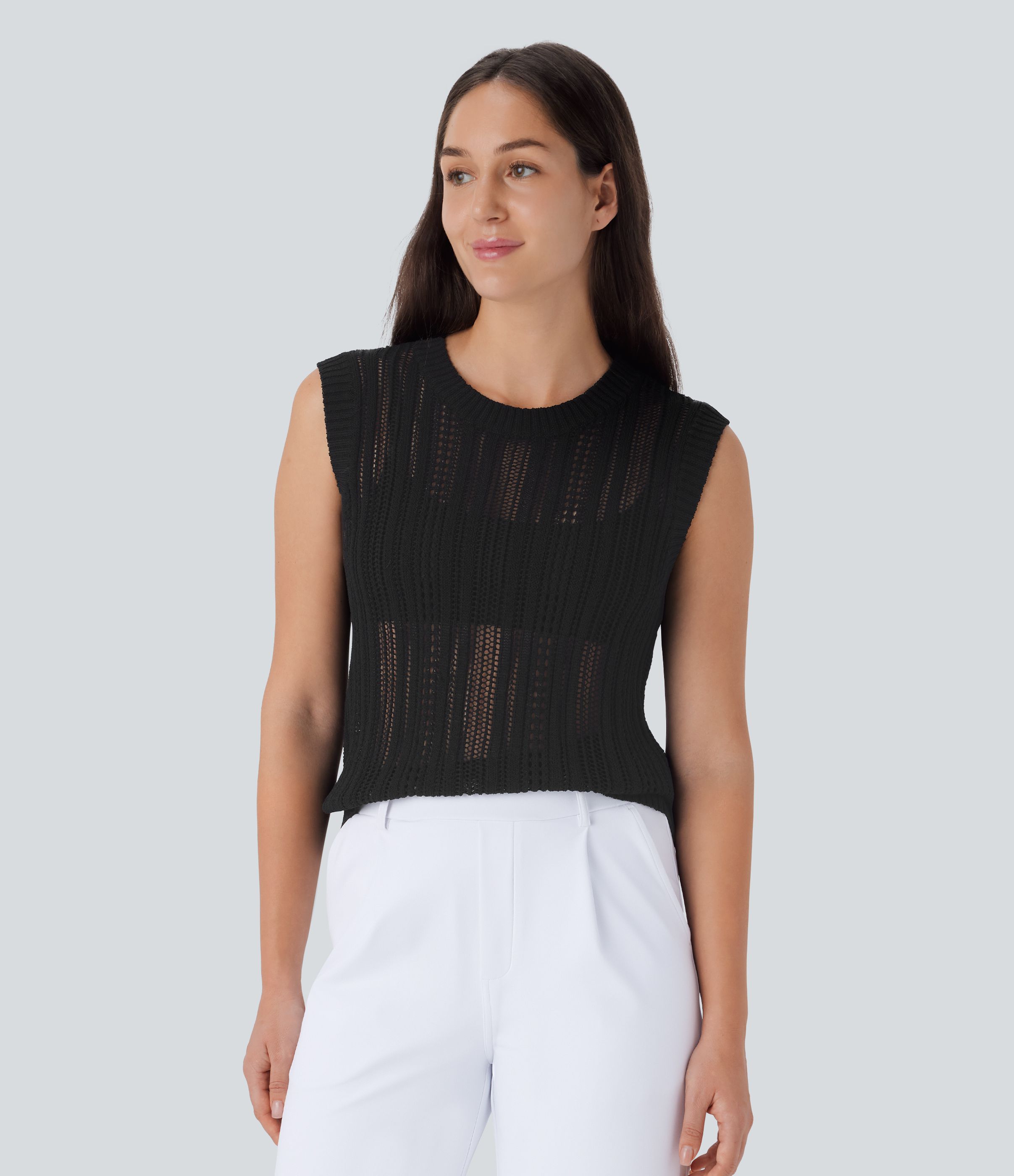 Chaleco oficina tejido crochet cuello redondo