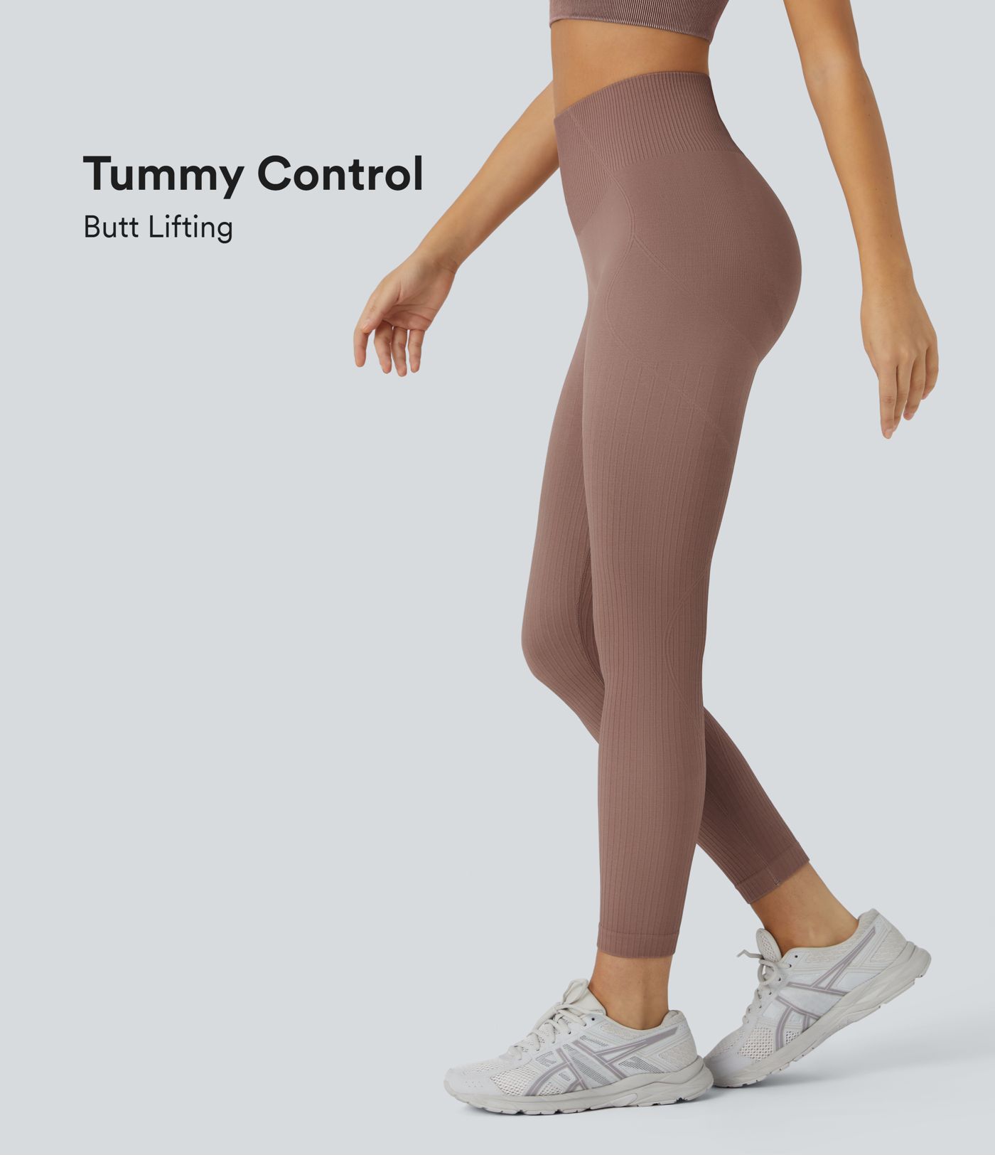 Leggings de entrenamiento acanalados con tiro alto suaves y sin costuras con control de abomen y push-up