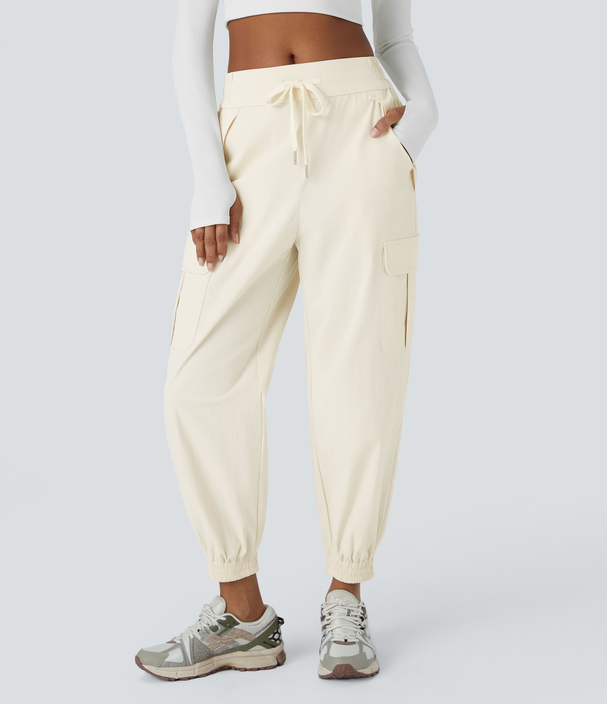 Joggers cargo acampar tiro medio repelente agua cordón múltiple bolsillo antidesgarro
